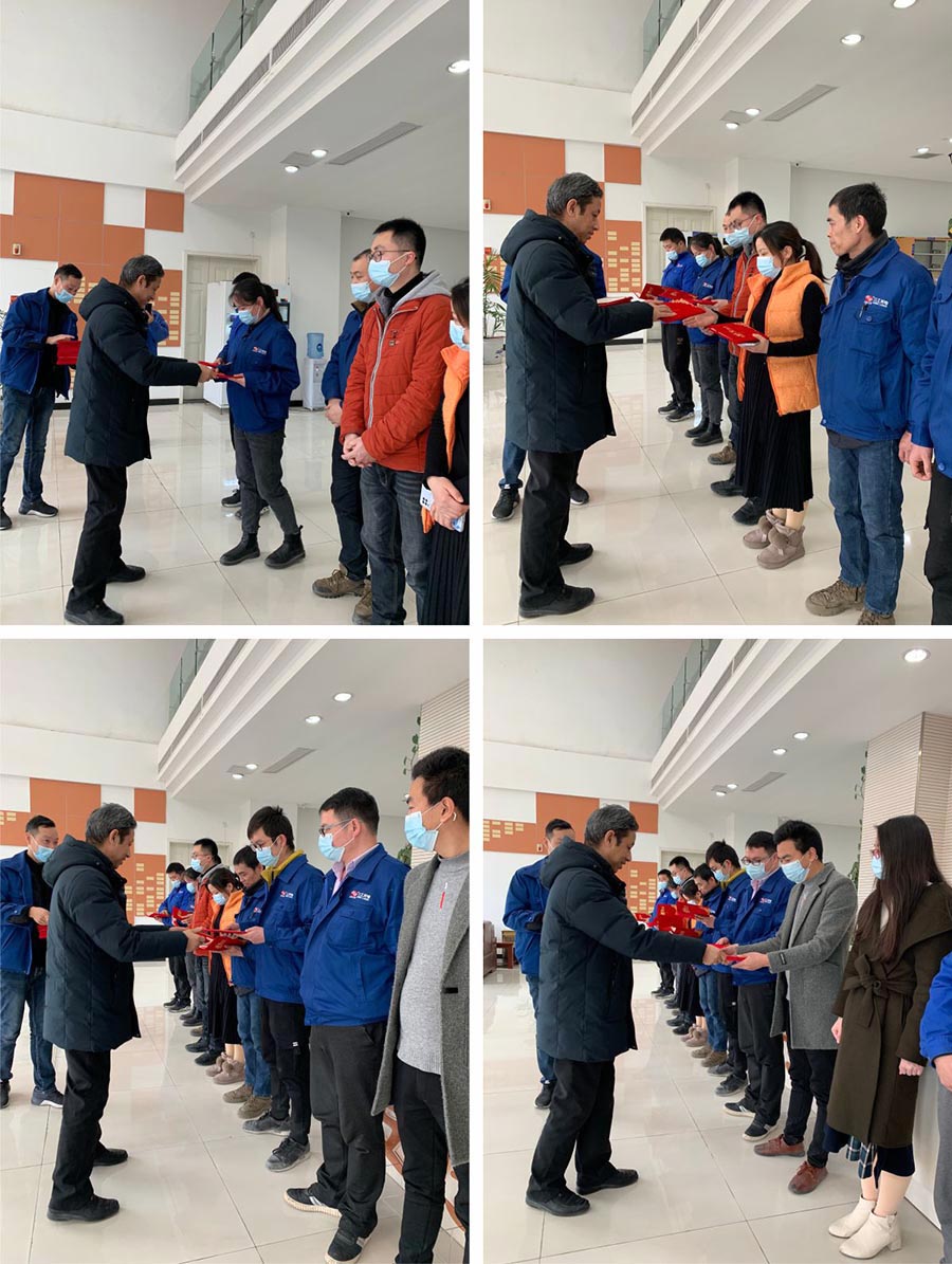 2021年2月4日,武漢三工光電產業集團舉辦了2020年度優秀員工表彰大會,三工集團總經理何總、三工激光總經理熊總、三工國際總經理曾總、三工精密總經理程總,三工光電總經理助理胡總參加了本次表彰大會,何總發表了講話,感謝大家2020年的付出,并對2021年做出了期許,最后親自為各子公司的優秀員工頒發證書及獎金。