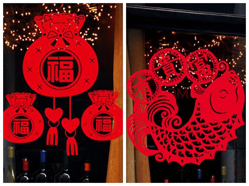2.窗花、墻貼,喜慶的春節除了福字之外,窗花墻貼也是必不可少的裝飾物品,象征著五谷豐登的圖案,象征著吉祥的動物,象征著鞭炮福字的場景,無一不表達出新年的熱鬧和新一年的美好。